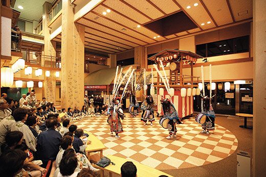 結びの宿 愛隣館では、一年を通して屋内でお祭り広場 南部ばやしが人気です。