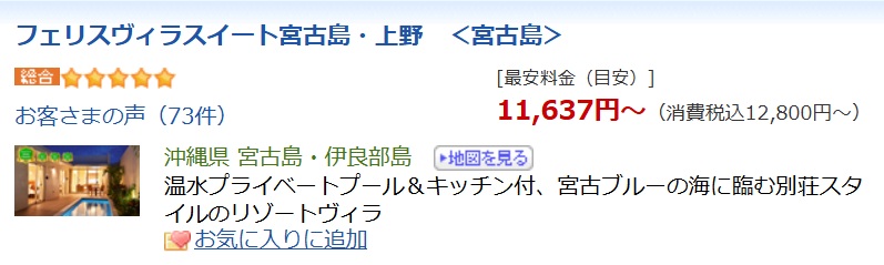フェリスヴィラスイート宮古島・上野の宿泊料とコスパは?