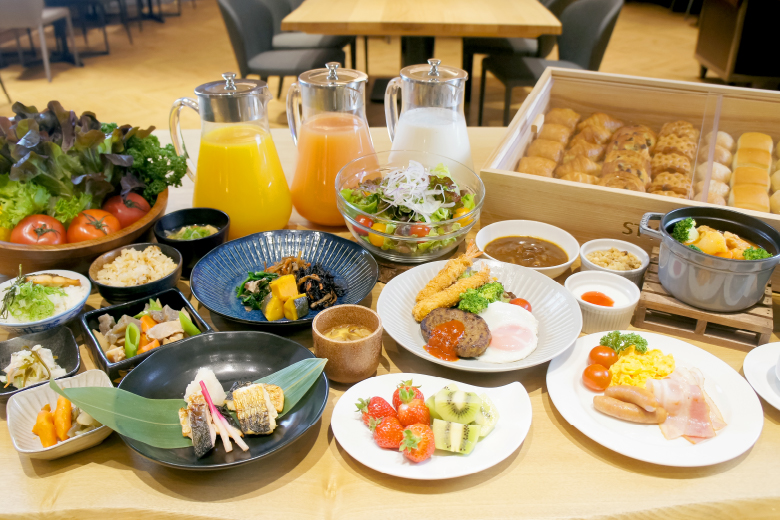 朝食はビュッフェで、好きな物をたくさん食べれるのは子供も大喜びです!