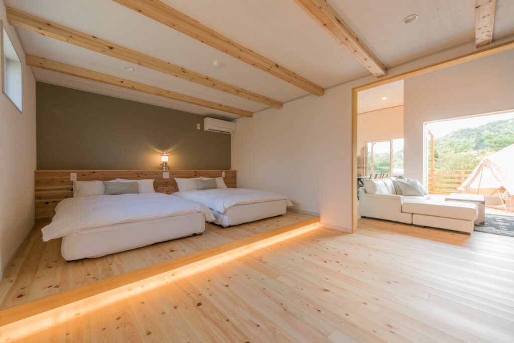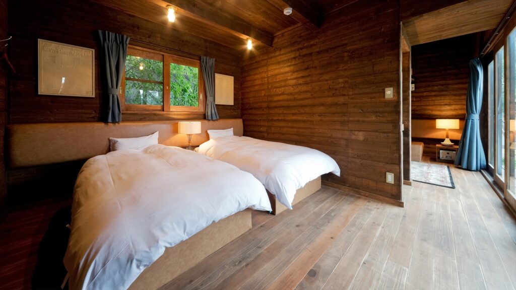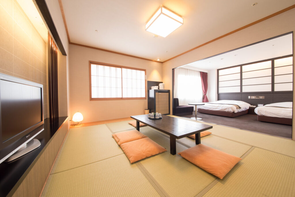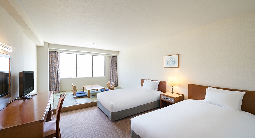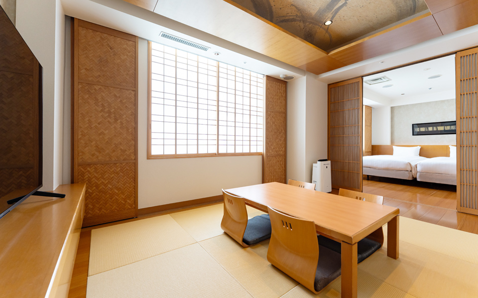 最大6名まで宿泊できる和洋室は、和室とツインベッドルームを完備しています。