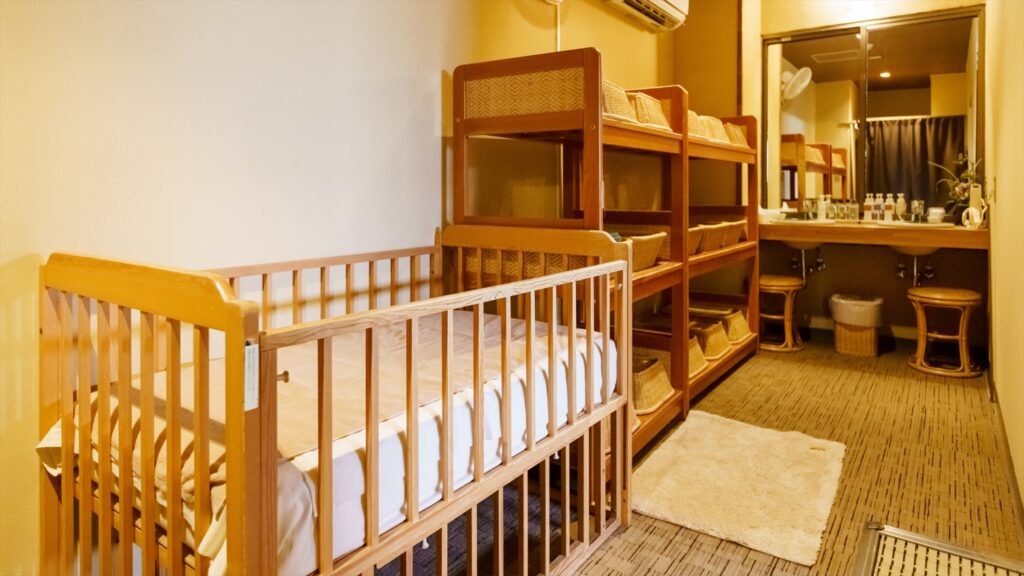 和室に布団を敷いて休むことができるほか、ベッドガードの貸出もあるのでベッドで休むこともできます。