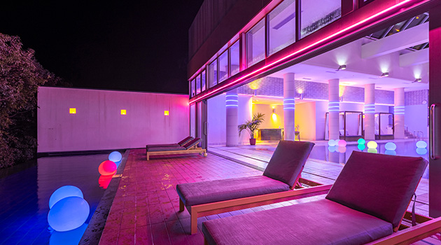 また夜はライトアップされ、幻想的な雰囲気のナイトプールを楽しむこともできます。