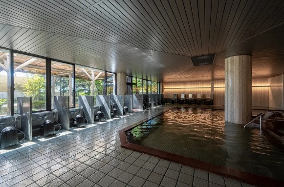 露天風呂と一体感のある開放的な大浴場は、ゆったりと過ごせる空間になっています。