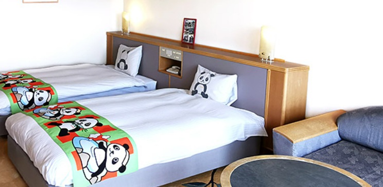 パンダに囲まれた客室に子どもも喜ぶこと間違いなし!