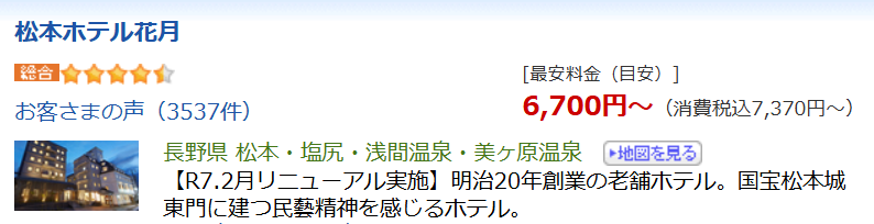 国宝・松本城にも近い松本ホテル花月に泊まりたい〜!