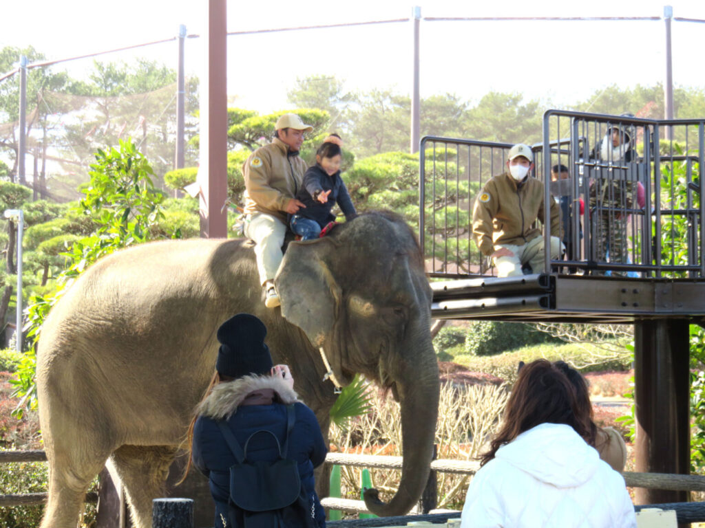 体験プログラムもいろいろな種類が実施されており、動物についての飼育員さんのお話を聞いたり、ゾウに乗ったり、一緒に散歩することもできます。