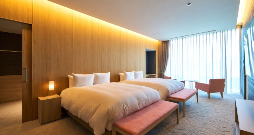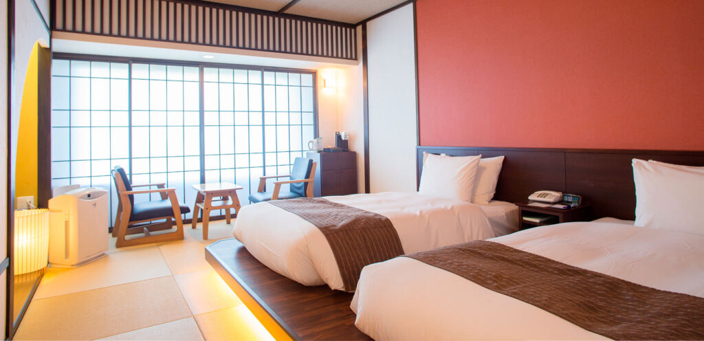 和洋室タイプの客室ではベッドも利用できるため、ベッド派の方に嬉しいポイントです。