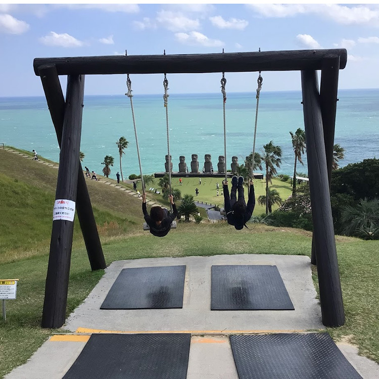 見晴らしのいい高台にあるブランコは、乗ってみるとスリリングだけどとっても気持ちいい!