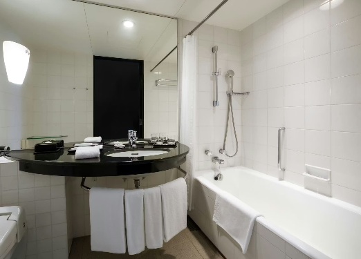 一部の客室では、浴槽とシャワーブースが分かれたタイプを採用しており、シャワーはガラスで仕切られた造りです。