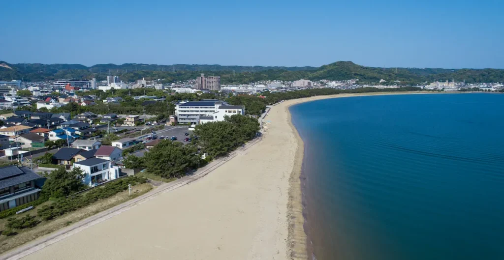 徒歩1分の場所には人気の海水浴場である西の浜海水浴場があり、海で遊べるのも魅力です。