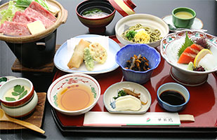 | 料理の魅力 | 夕食・朝食ともにお部屋でゆったり会席料理を楽しめる 子供用メニューもあり 素材・出汁・器にこだわったお料理 |