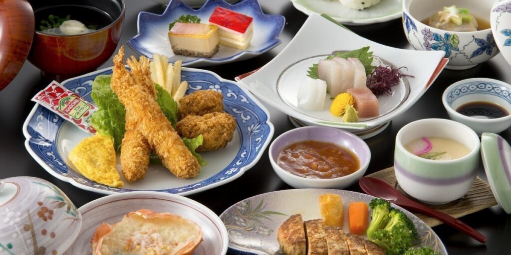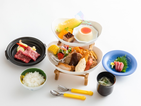 夕食には伊勢海老や佐賀牛、子ども向けにはエビフライやからあげなど子供に人気のメニューが揃い、大人も子供も楽しめる食事が魅力です。