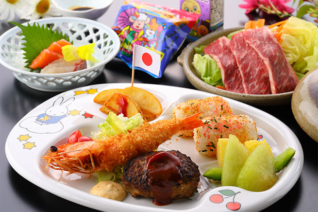 子ども用の食事メニューもあり、家族で滞在を楽しむことができます。
