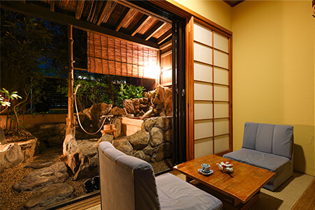 お部屋で食事もお風呂も楽しめるので、家族みんなでゆったりと過ごせます。