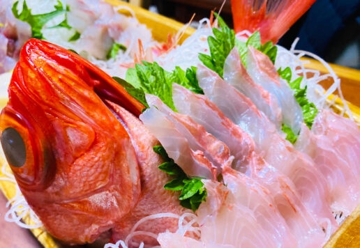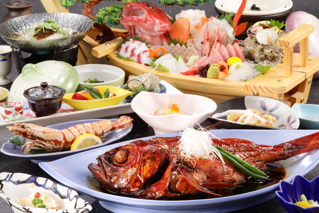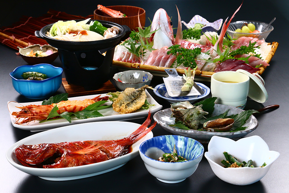 名物「金目鯛の丸煮コース」は、金目鯛を丸ごと食べることができ、新鮮な海の幸を同時に味わえる魚好きにはもってこいのコースです。