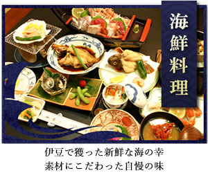 中でも、伊勢海老やあわび、金目鯛の煮つけなど海鮮料理は大人気。