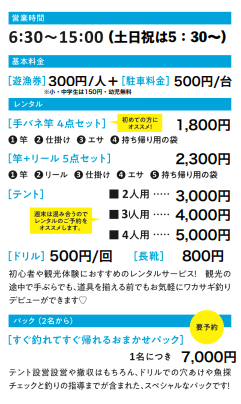 | 釣り道具の貸出 | あり |