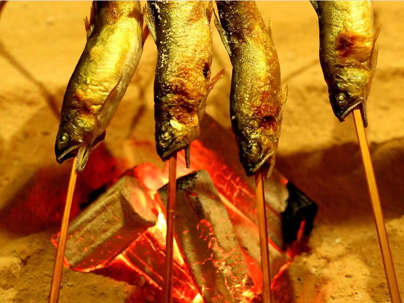 釣った魚は、その場で職人が炭火焼きで焼いてくれるので、新鮮な味をその場で楽しむことができます。