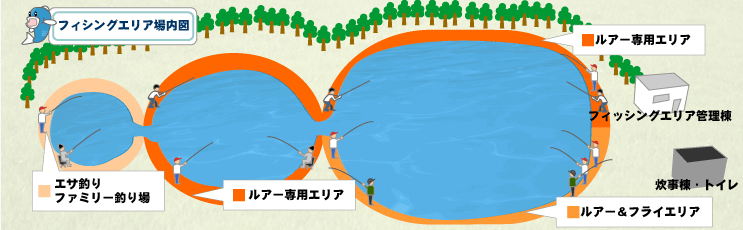 区画が分かれているので、場所によってさまざまな釣り方で釣りを楽しむことができます。