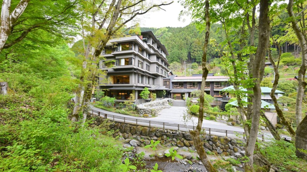 大松閣の周辺には人気の釣りスポットがあり、渓流で釣りをすることができます。