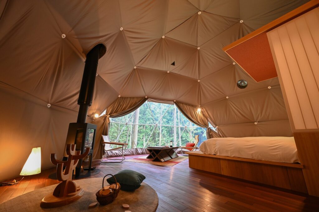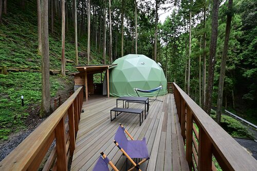 大松閣からグランピング施設までは徒歩3〜4分の距離だよ!