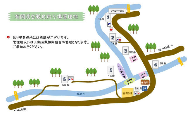 宿おすすめの釣り場は、宿から車で約15分の場所にある有馬渓谷観光釣場です。