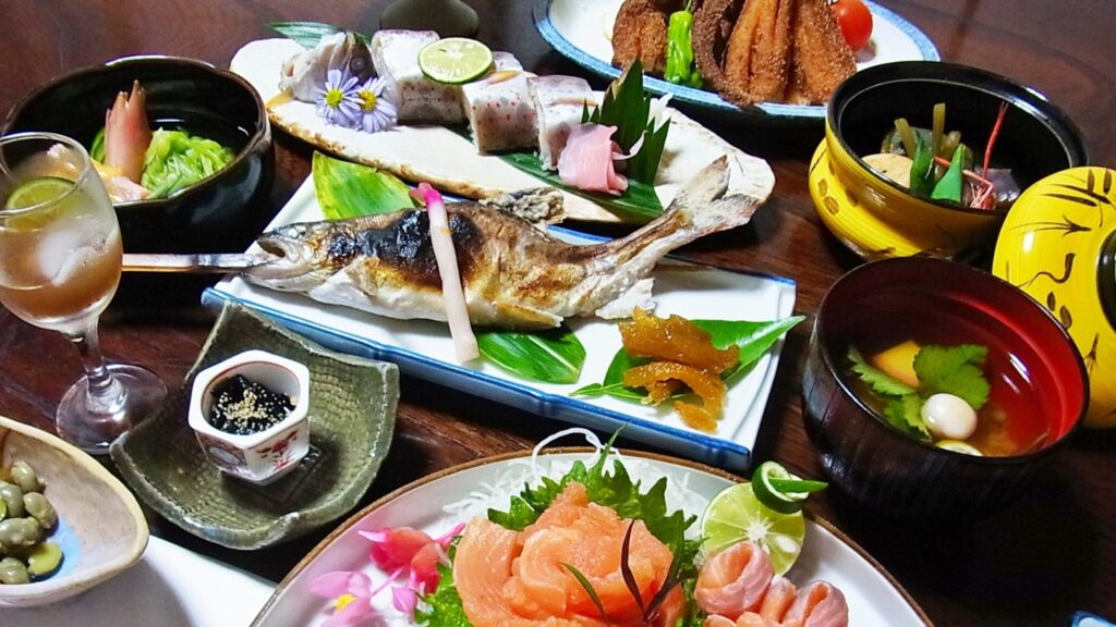 料理は、新鮮な魚料理を中心に栄養バランスを考えた献立です。