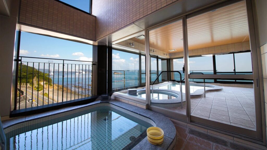 露天風呂からは、雄大な鳴門海峡を望むことができ、どんな時間に入っても素敵な景色を楽しめます。
