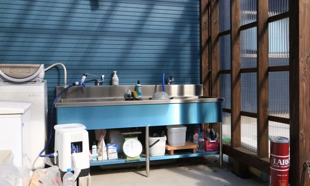 屋外キッチンで魚の処理OK
