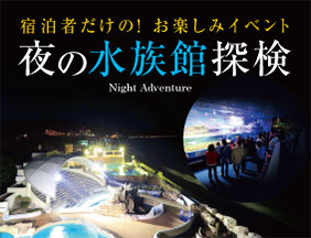 毎晩開催される「夜の水族館探検ツアー」は宿泊者だけの特別体験です。