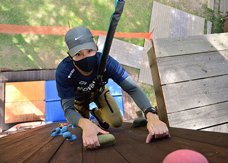 クライム&ジャンプは、高さ約8mの壁をボルダリングで登り、そのまま飛び降りるフリーフォール体験ができるスリル満点のアクティビティです。
