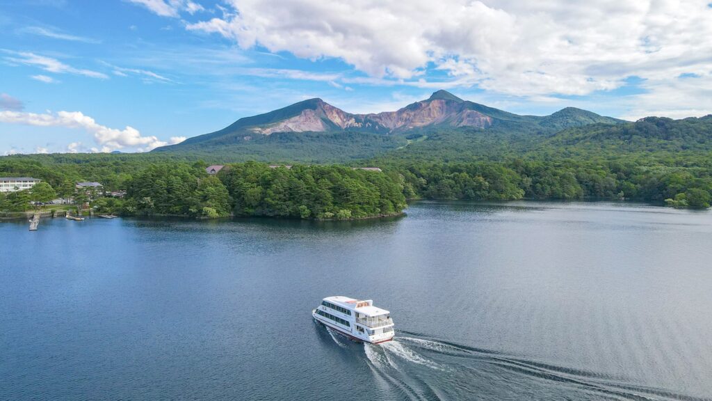 春〜秋には桧原湖の観光船で湖上クルーズ体験もおすすめ。