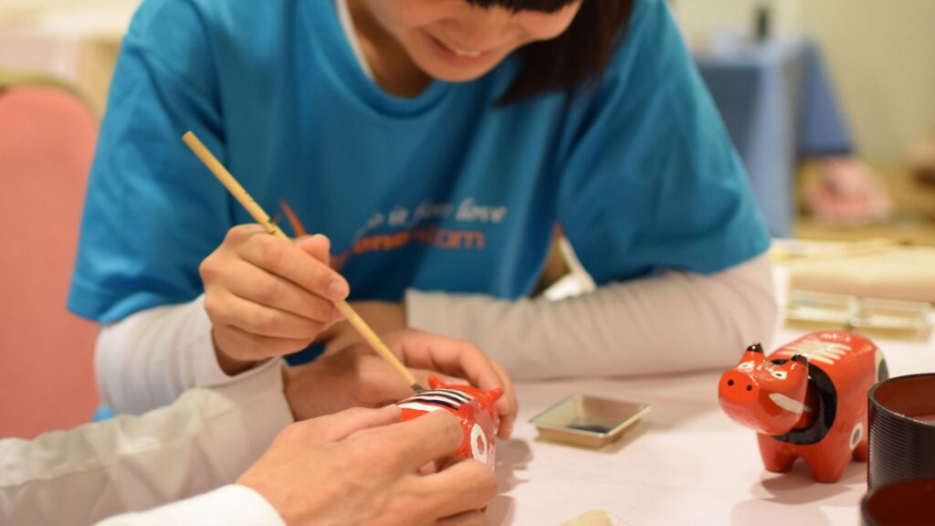 会津の郷土玩具「赤べこ」の絵付け体験も人気で、旅の思い出づくりにぴったり。