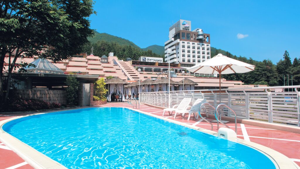 ゲームコーナー卓球場カラオケな館内の遊び場が充実しており、夏季には宿泊者無料の屋外プールも楽しめます。