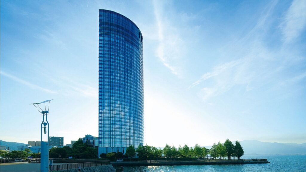 びわ湖大津プリンスホテルは、大津市にそびえる38階建ての高層ホテルです。