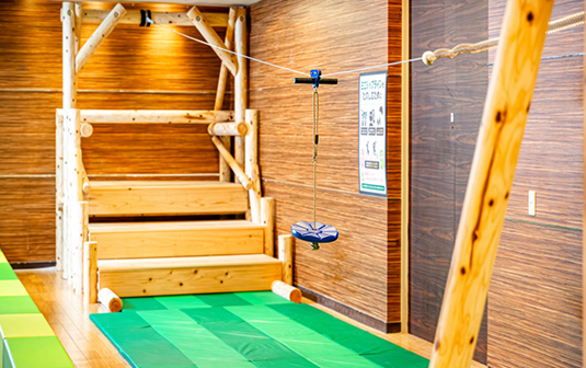 子ども向けのジップラインでは、室内でも元気いっぱい体を動かして遊べます。