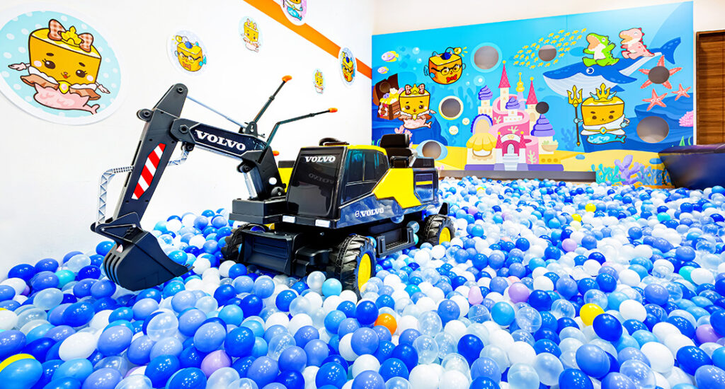 館内の遊び場はほとんどが屋内にあり、ボールプールやキッズスペース、ゲームコーナーなどもすべて室内です。