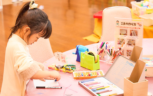 工作ひろばでは、自由にお絵かきをしたり、工作を楽しんだりできます。