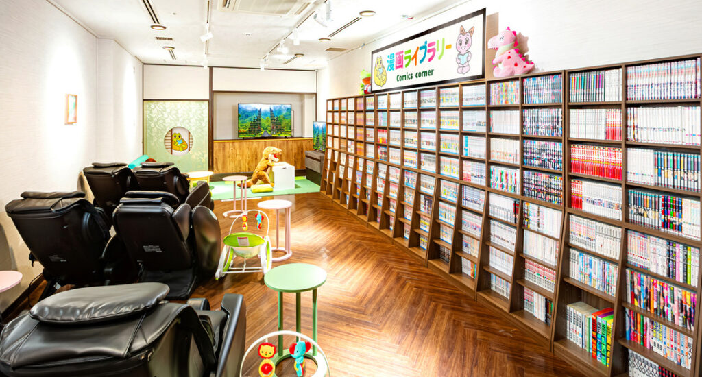 人気のマンガがそろうマンガコーナーは、小学生のお子さんや少し休憩したいパパママにもおすすめのスペース。