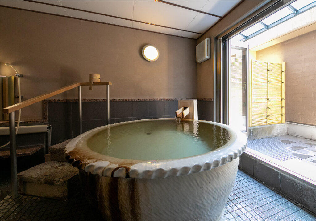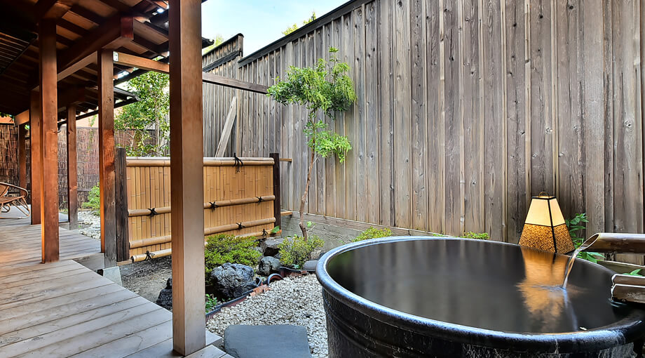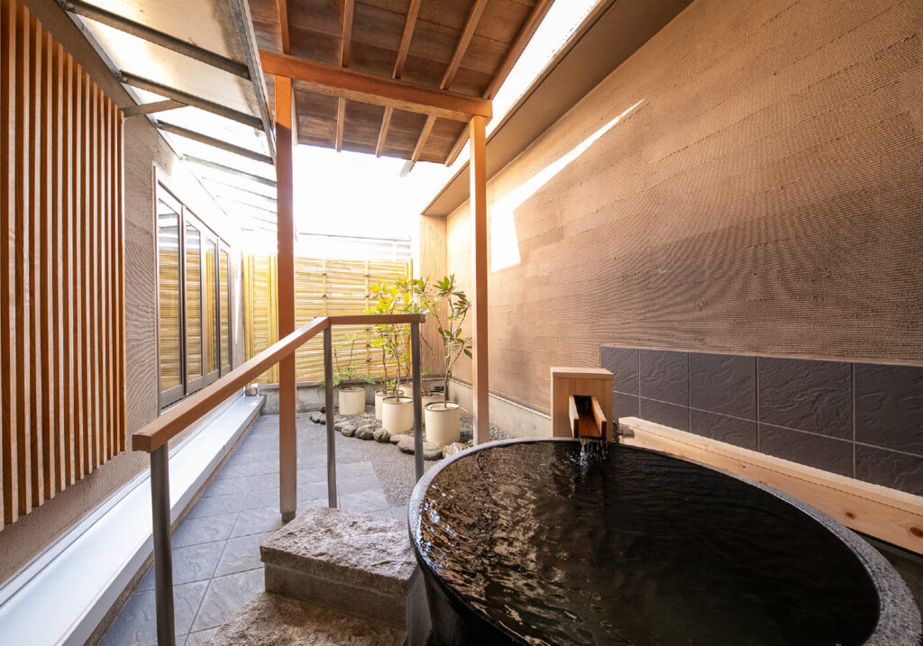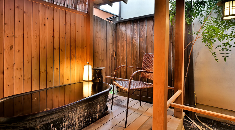 時間を気にせずゆっくり入りたいなら、露天風呂付きの部屋もあるよ♪