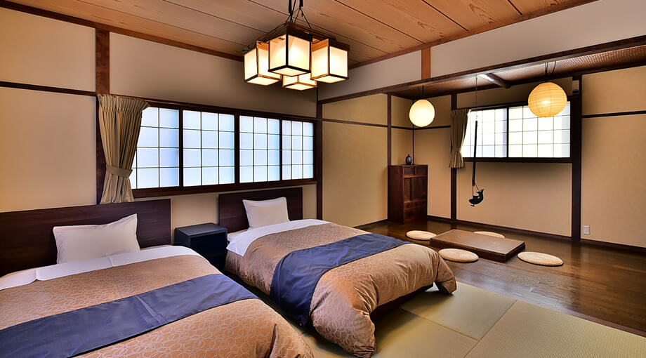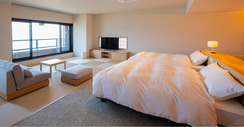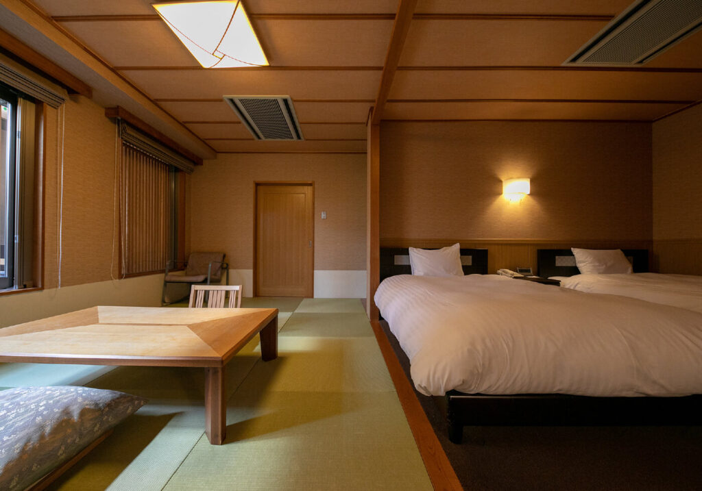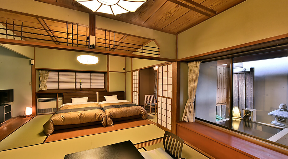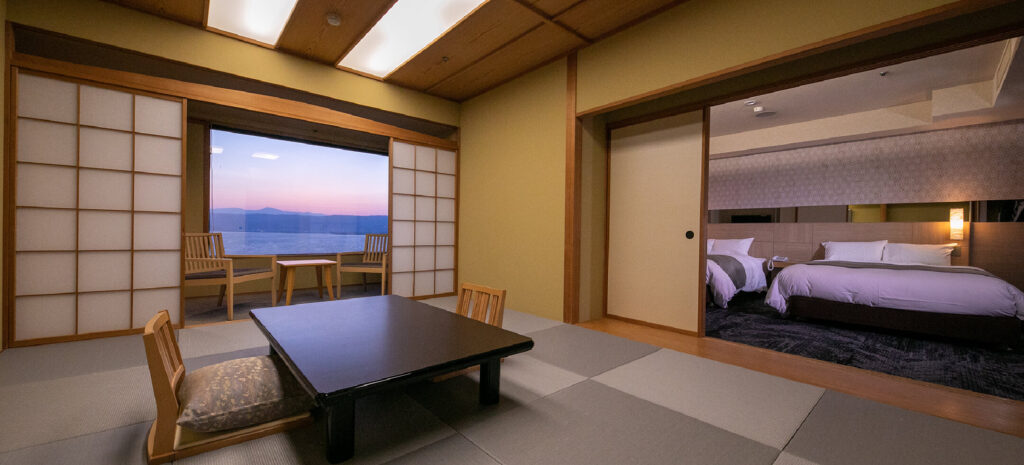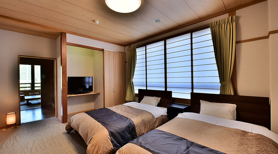 信州上諏訪温泉 諏訪別邸 朱白 | ベッドと布団が利用可能な和洋室 | 家族で入れる貸切風呂