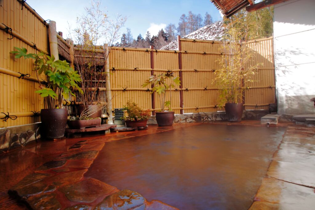 信州上諏訪温泉 諏訪別邸 朱白は、上諏訪温泉唯一の館内に2つの温泉を有しており、「朱の湯」(茶色の湯)と「白の湯」(透明の湯)が楽しめます。