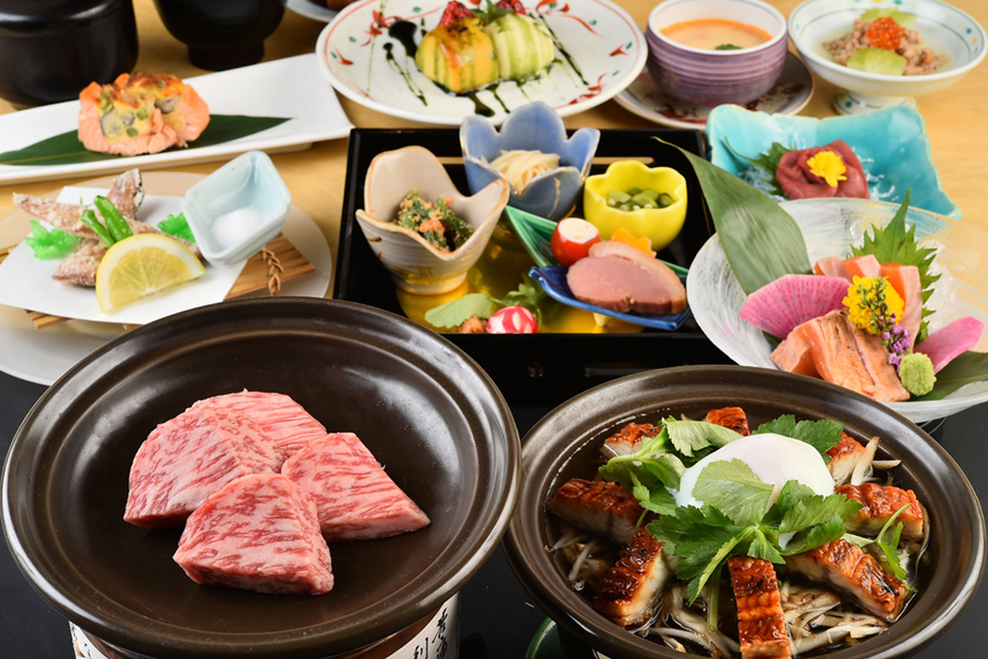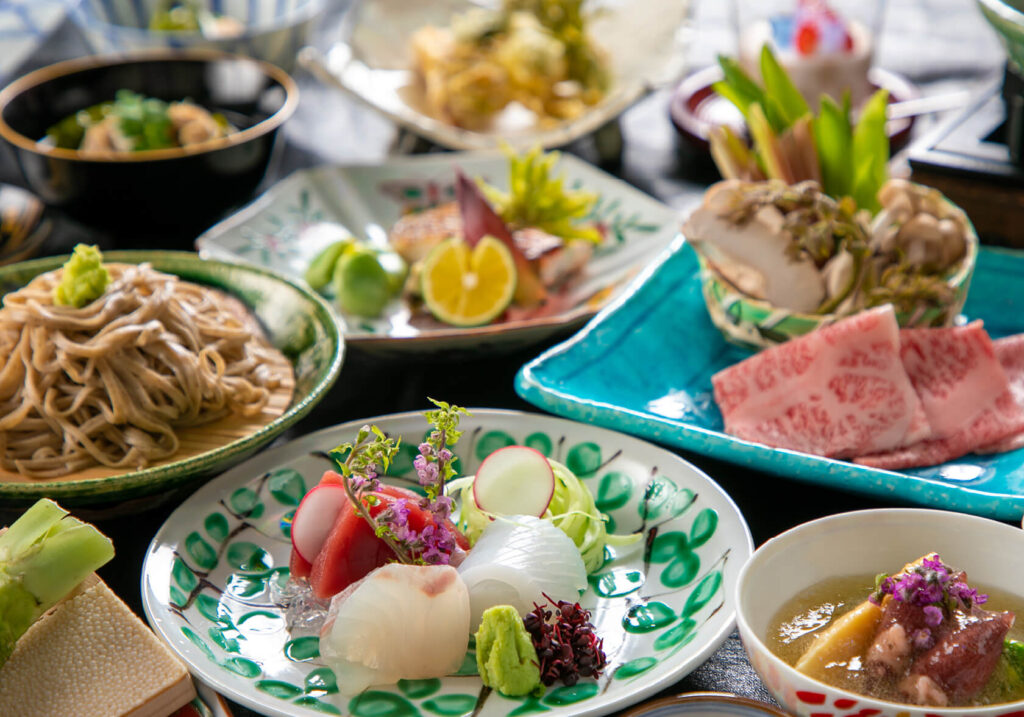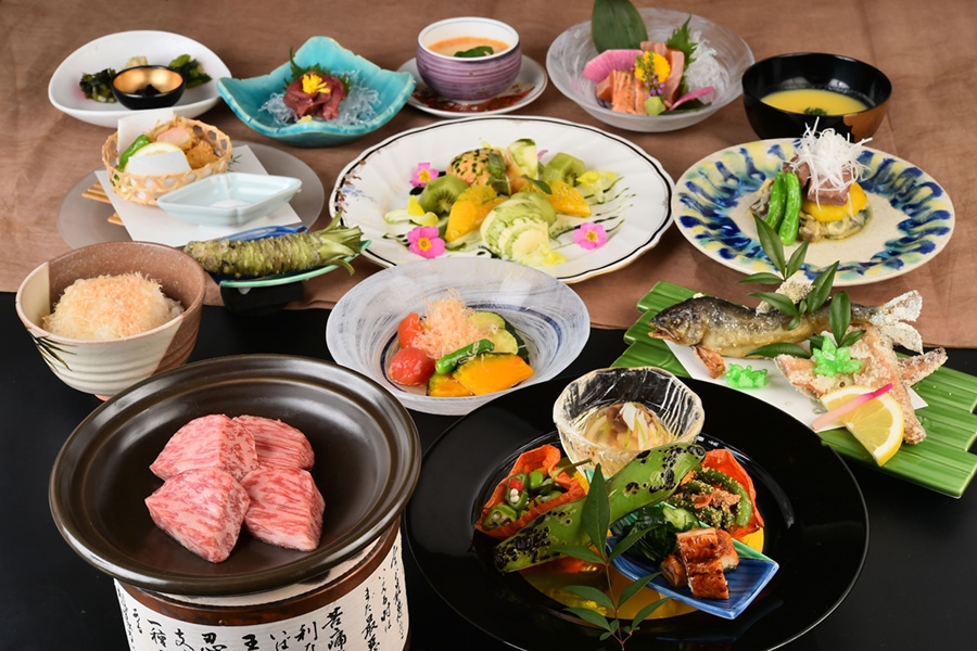 最上級会席 極みは、信州の美味しい食材と日本各地の旬の食材を使用しています。