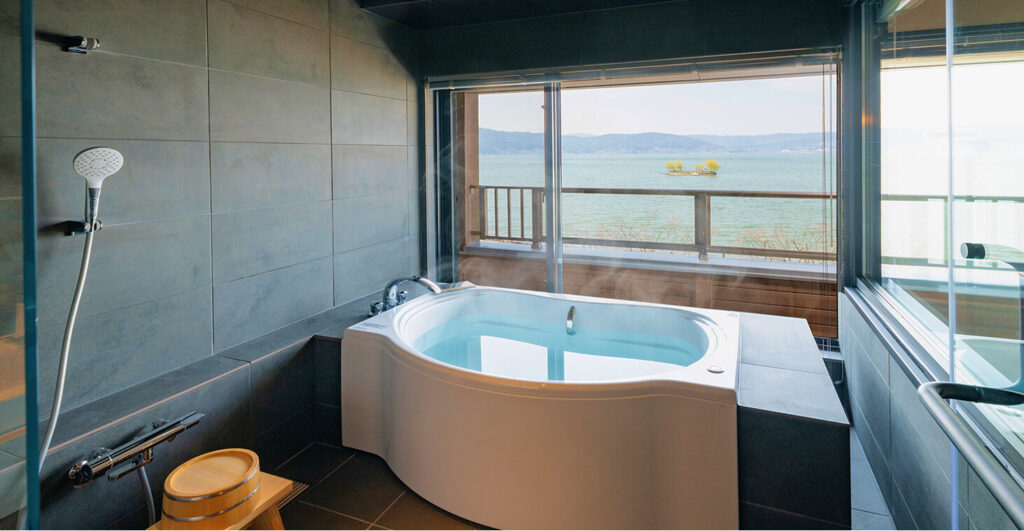 諏訪湖を眺めながら、のんびりと滞在を楽しめる環境が整っています。