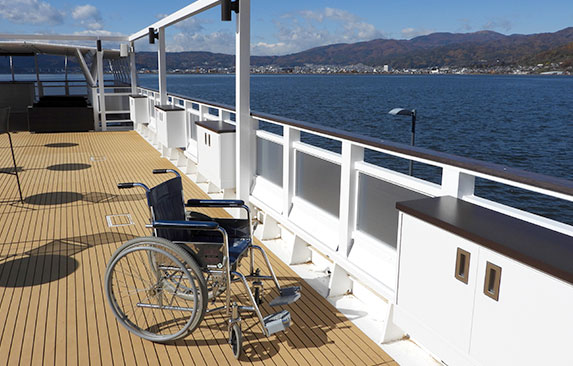 スワコスターマイン号は、バリアフリー対応となっており、車椅子のまま乗船することができるのも嬉しいポイント。