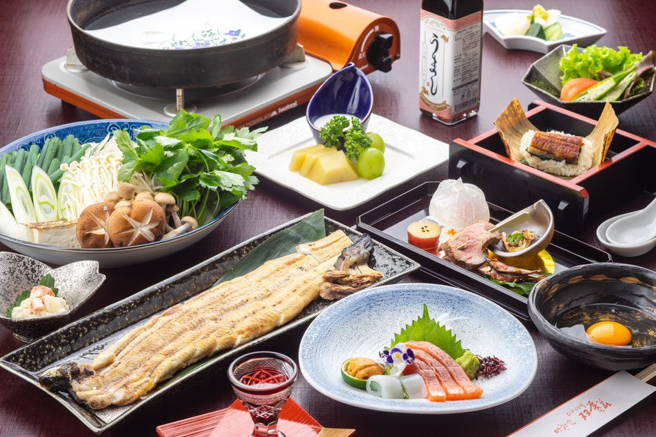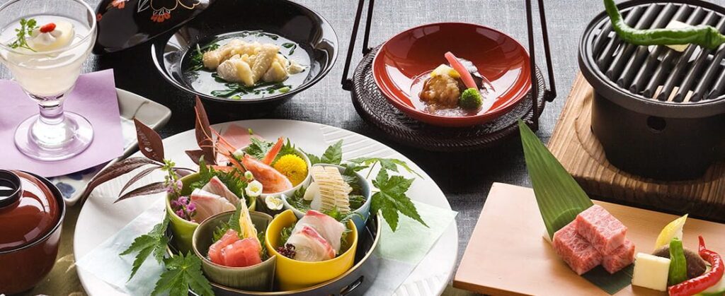 夕食には季節替わりの前菜・造里・煮物・焼物・蒸物などが並ぶ人気の基本コースがあり、子ども向けにはお子様ランチやお子様御膳があるので、家族それぞれの好みに合わせて選べるのが魅力です。