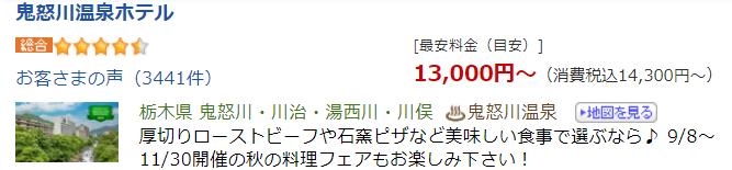 | 宿の値段目安 | 1泊2食付き 約19,800円〜/人 |