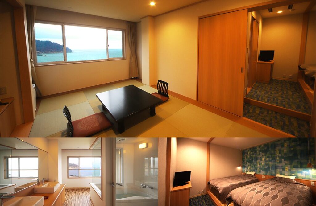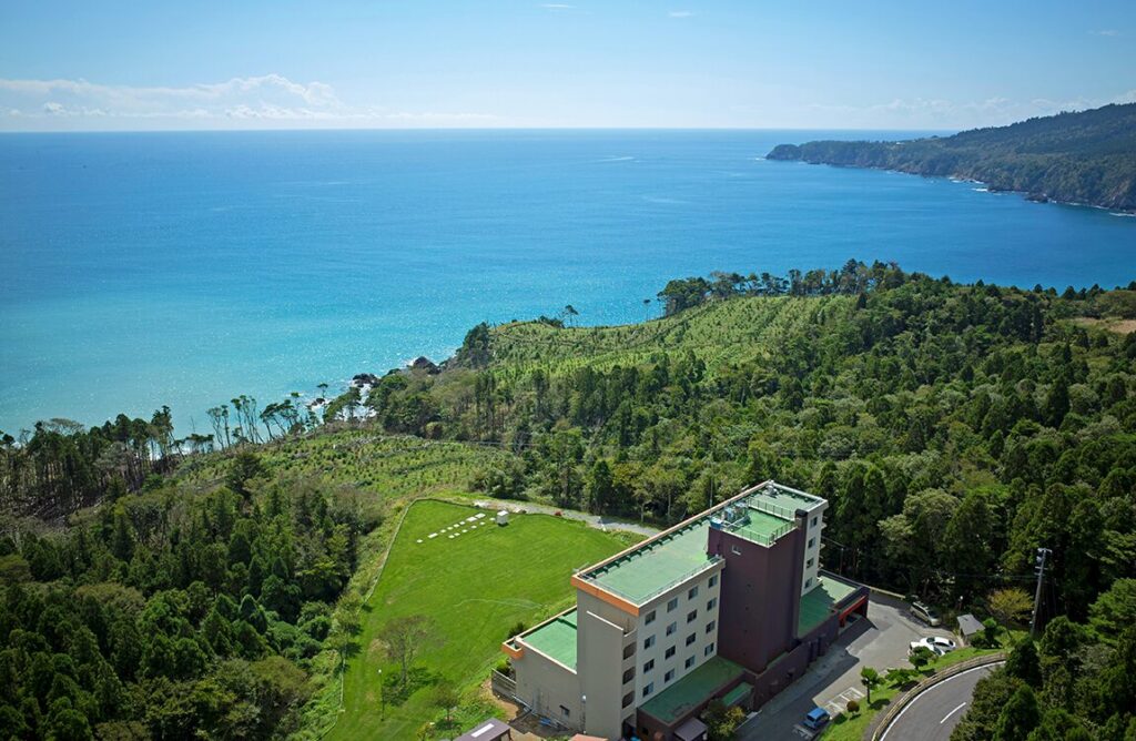 「漁師の宿 あたみ荘」は、海に面した切り立った高台にあり、窓からはパノラマな海の景色が一望できる宿です。