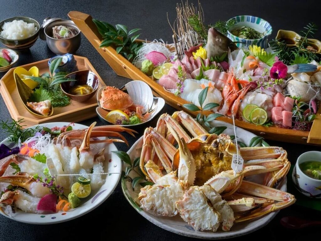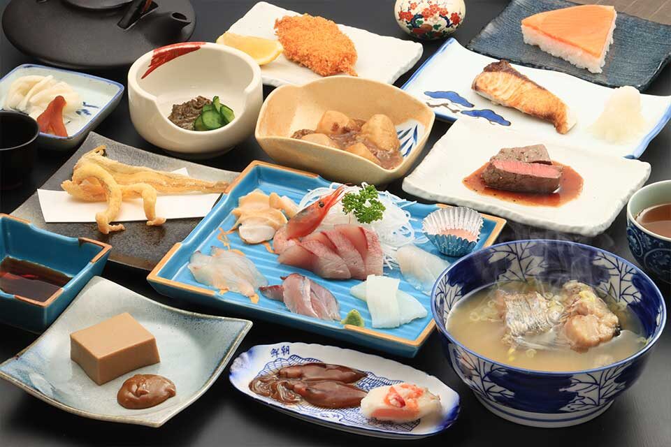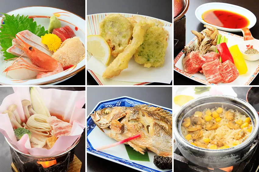 料理は、氷見港からあがった海の幸と、季節の山の幸をつかった会席料理です。