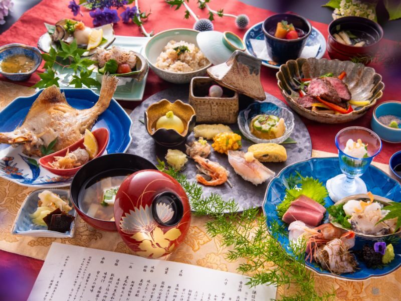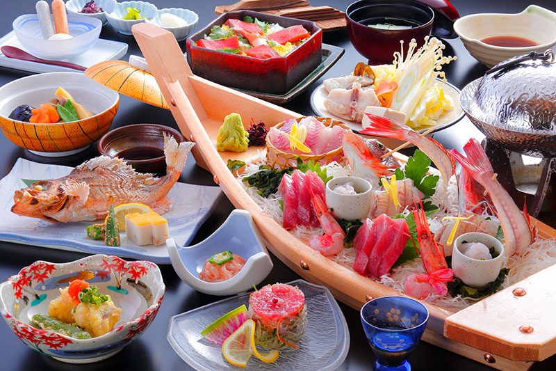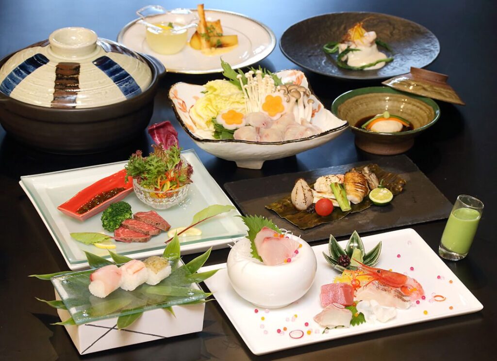 料理は、地元富山の食材を中心に、料理長一押し厳選素材をつかった懐石料理です。